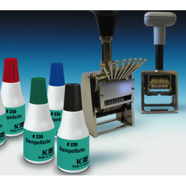 Encre #230: Encre à base d'huile pour numéroteur métallique, incrémenteur & folioteurs disponible sur le marché (exemple type Reiner).